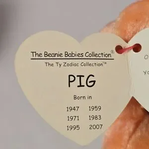 Celebrate the Year of the Pig with this vintage TY Zodiac Pig plush from 2000! This adorable 7-inch stuffed animal features a soft peach-colored body with fuchsia accents and the signature TY heart tag, making it a must-have for collectors and zodiac enthusiasts.