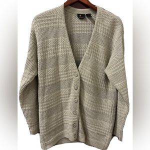 Vintage 90s LizSport Womens Size Medium Textured Oatmeal Tan Cardigan Sweater