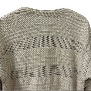 Add a classic touch and a bit of nostalgia to your wardrobe with this vintage 90s Liz Sport cardigan. The oatmeal color and basket weave pattern give it a textured look that will complement any outfit. The cardigan features an open-knit style, long sleeves, and a relaxed fit that will keep you comfortable all day long.