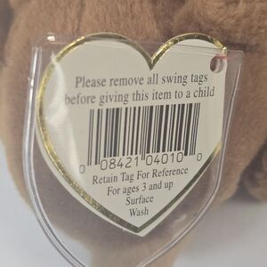This is a rare and collectible Beanie Baby called Cubbie the Bear, made by Ty in 1993. It comes with its original tags and is part of the PVC series, with a number of 4010. This Bear Beanie Baby is a part of the Beanie Babies collection, which is a popular line of plush toys that were released in the 1990s. The recommended age range for this toy is 4+ years old. It is a great addition to any Beanie Babies collection or as a gift for a child.