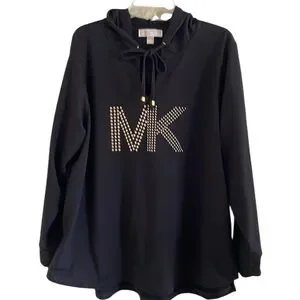 MICHAEL KORS GOLD STUDDED BLACK HOODIE Size 2X Black Goldtone Hardware