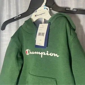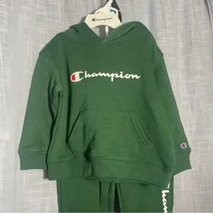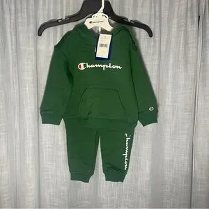 Cozy green tracksuit with iconic Champion logo. Includes hoodie and joggers.