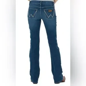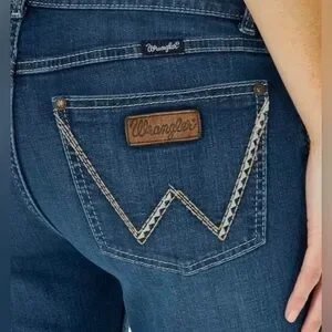 WRANGLER BOOT CUT DENIM JEANS MATERNITY RETRO MID RISE PANTS COWGIRL BABY SIZE 7 x 32