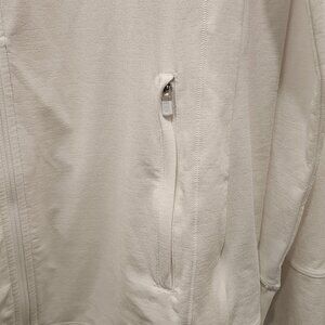 Athleta Women's Pacifica Illume UPF Relaxed Jacket Size L. In excellent, pre-owned condition. No visible flaws. Features thumb holes on the sleeves. Shows very little to no signs of wear. Fabric is a little sheer.