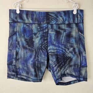 Stylish and comfortable women's shorts featuring a vibrant blue pattern. Perfect for workouts or casual wear.