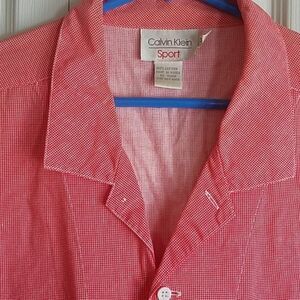 Calvin Klein Sport Blouse Coral and Cream Checks Size M