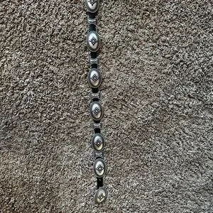 Elevate your style with this stunning silver embellished belt. Perfect for adding a touch of elegance to any outfit.