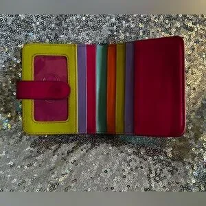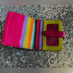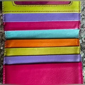 Brighten your day with this vibrant women's wallet. Featuring a playful mix of turquoise, pink, orange, green, and purple, it's perfect for adding a pop of color to your accessories. Ideal for keeping your essentials organized in style.