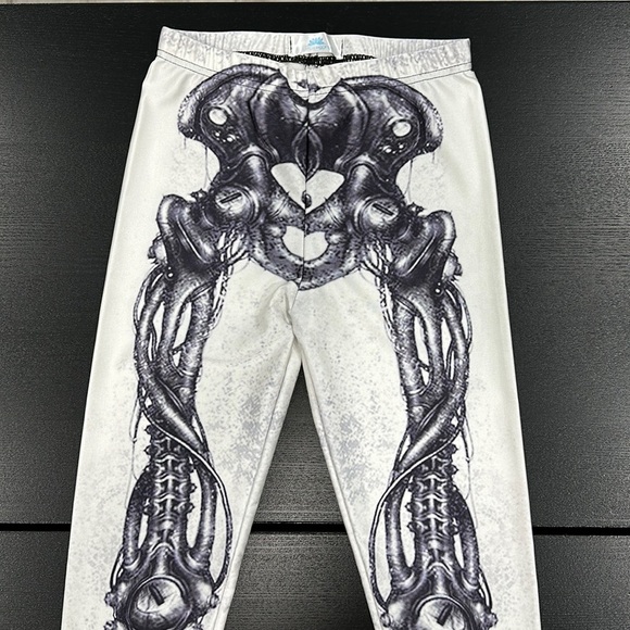 Lotus Leggings White Leggings with Black Skeleton Print in size Small. Brand new! Never worn. Only flaw is a manufacturer miss-print on the back of one let (shown in photos). Not noticeable while wearing. Measurements are shown in photos, please refer to measurement pictures for exact sizing.