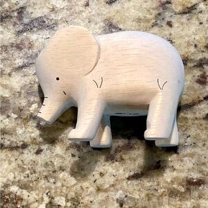 Super cute carved wooden elephant figurine! This piece is in excellent condition and so unique. The elephant stands about 2 inches tall and is about 3 inches long. Ships from a smoke and pet free home.