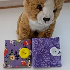 Keep your space tidy with these charming floral print fabric felt book. Featuring a playful design with vintage fabric, it's perfect for adding a touch of fun to your sewing, embroidery, safety pin or jewelry organization. 3x3" Perfect stocking stuffer. **needles and cat not included