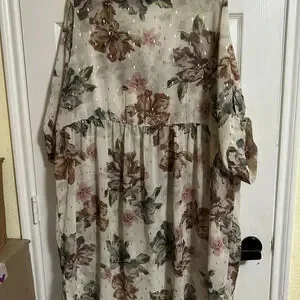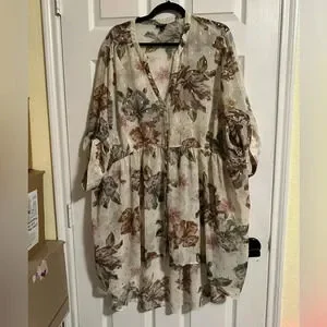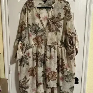 Torrid Sheer Floral Chiffon High Low Tunic Shirt Dress Plus Sz 4 Ivory Gold