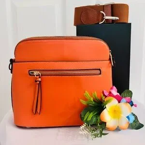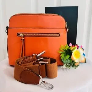 Brighten up your look with this vibrant orange crossbody handbag, designed for both style and everyday practicality.