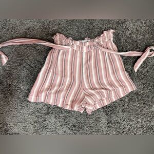 Hollister California pink and white stripes, ultra high-rise, side pockets, elastic waist, tie at waist, pull on, flowy, comfortable soft shorts.