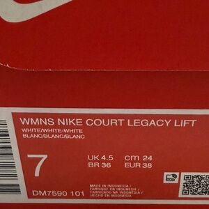 NWOT Nike White Court Legacy Lift (Size 7)