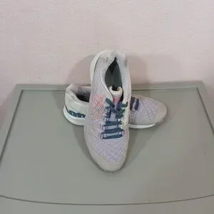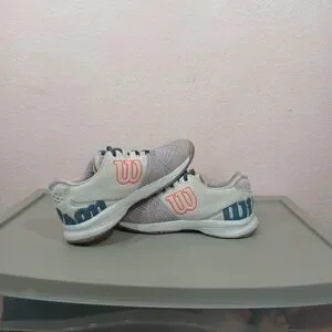 Step up your game with Wilson women's tennis shoes. Featuring a sleek white and lavender design, these shoes offer both style and performance on the court.