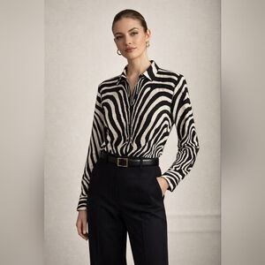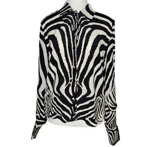 Laurel Silk Zebra Print Blouse Vintage Y2K Black Ivory Button Front EU 34