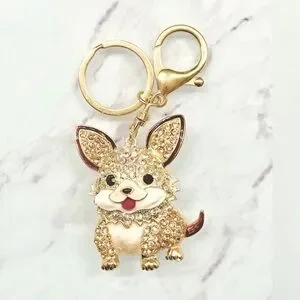Champagne & White Rhinestone Dog Purse Charm / Keychain.