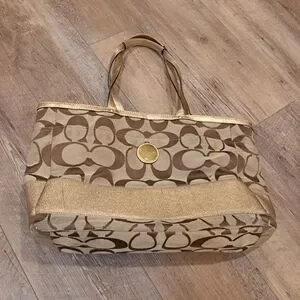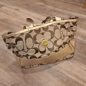Coach Signature Brown and Gold Tote Bag