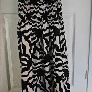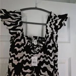 NWT Loft dress with bold black and white pattern. Features stylish ruffle sleeves.