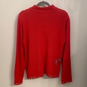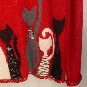 Coldwater Creek Vibrant Red Cat Design Cardigan