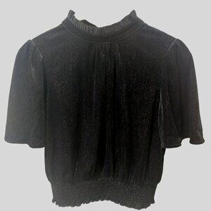 NWT Voy Black Sparkly Short-Sleeve Top W/ Bow Tie Back~Smocked Hem~SMALL
