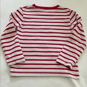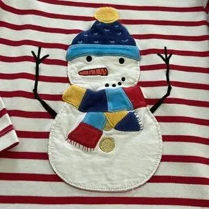 Adorable appliquéd snowman long sleeved shirt in red and white stripes. Size4-5 yr. In great condition! See photos. By Mini Boden