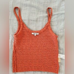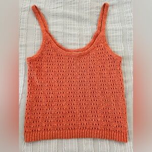 Worn once. Great condition. Classic lightweight open stitch sweater tank by Madewell. Slightly Cropped. Orange/Coral Color looks so good with a tan. Super versatile staple piece for spring / summer / transitioning to fall. Beautiful details, great cut, high quality. Size XS Sold out on Madewell