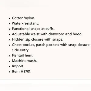 Chic khaki parka with hood. Includes front pockets and adjustable waist. No issues. No odor 9.75 out of 10.
