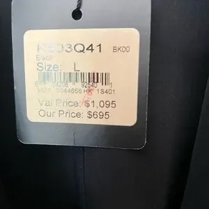 No flaws very beautiful jacket, hangs nicely, and doesn’t wrinkle