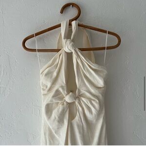 This elegant white halter dress is perfect for any occasion. Its sleek design and classic color make it a versatile addition to your wardrobe.