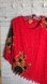 Vibrant red blouse with intricate beading. Features bold floral designs. Ideal for a stylish statement.