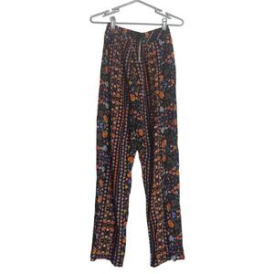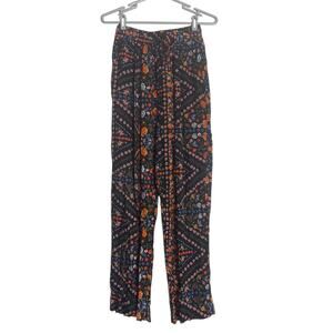 NEW Olivaceous Black Floral Thin Wide Leg Pants Women Small Boho Festival Hippie
