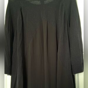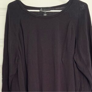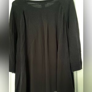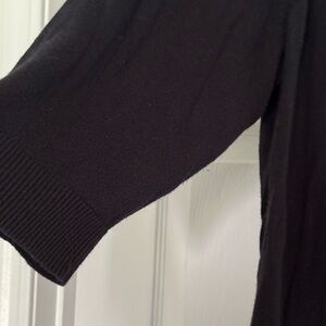 Elegant black crew neck sweater. Features a high-low hem. Perfect for versatile styling. ✨