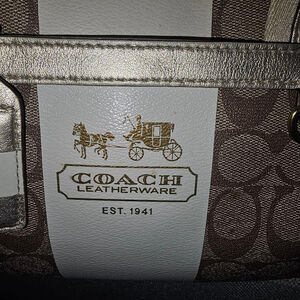 Elevate your style with the Women's Coach Beige Gold Monogram Satchel, a perfect blend of luxury and functionality. This exquisite bag is crafted from high-quality materials, ensuring durability while exuding sophistication. The iconic monogram design not only makes a bold fashion statement but also complements any outfit, whether casual or formal. With ample space for your essentials, this satchel helps you stay organized without sacrificing style.