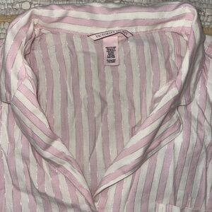 Victoria’s Secret 2 Piece Set Pink and White with Silver Striped Pajamas