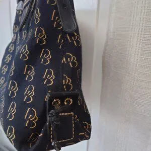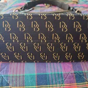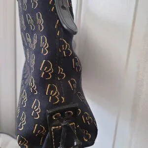Black cotton exterior with DB monogrammed in gold with black trim and black tassels