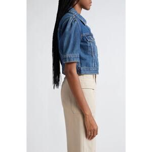 Veronica Beard Raina Blue Jean Denim Cropped Jacket Short Puff Sleeve | XL