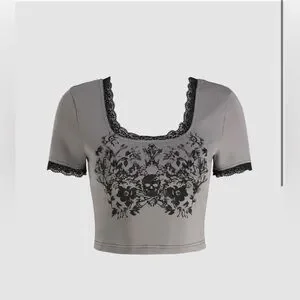 Elevate your style with the featuring three chic tops. Each top is adorned with elegant lace trim and intricate floral/skull designs. red, gray, and versatile black, these tops are perfect for any occasion. For reference I’m 5’5 140 lbs. The black lace top isn’t recommended for women with big Cs or Ds The top fit too small on me and the bra was visible from the bottom. Which is why I’m selling it. I’ve worn the grey one a few times but I don’t see myself wearing it any longer. Red top is Romwe. Grey is from Cider. Black is from SHEIN(never worn) . *****red top is size medium fits like a small, grey is size small. Black lace is size medium fits tight like a small!*****. Im wearing them in all the pictures. For reference….
