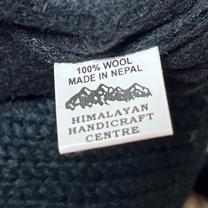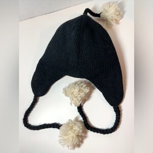 White Skull Design on Black 100% Nepalese Wool Winter Hat with Pom Pom Ties
