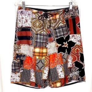 Y2K Billabong Patchwork Hibiscus Board Shorts Vintage Mens 32 Surfer Skater