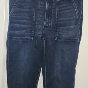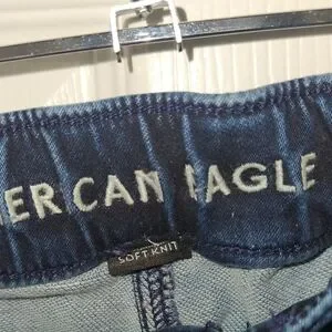 American Eagle Next Level Jogging Blue Jean Stretch Size 6 Regular. The measurements lying flat are the following: waist 14" length 34" inseam 9" (top) 26" (bottom). The pants are in great condition with no rips or tears. Please look closely at pictures. The jeans have only been worn a couple of times and are very clean with no stains or spots. The American Eagle Next Level Jogging Blue Jean Stretch in size 6 regular offers a comfortable and stylish option for women looking for a stretchy and solid-colored pair of jeans. With a medium fabric wash and a regular fit, these jeans feature a zip and button closure, perfect for everyday wear. Made from Cupro material, these jeans by American Eagle Outfitters are sure to provide a flattering skinny style with added stretch for ease of movement.