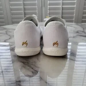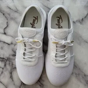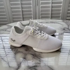 Gently used in great condition Fuego Dance White Split Sole shoes are versatile dance shoes for dance enthusiasts looking for both style and functionality. Made for both indoor and outdoor use, these shoes feature dual pivot points that let you turn and spin on any surface as well as give you the ability to easily flex and point your toes! The minimalistic design complements any outfit. The Fuego brand is known for producing high-quality dance shoes, making these sneakers a reliable choice for dance routines in salsa, bachata, west coast swing, hip hop, or any other dance! Retails for $150.