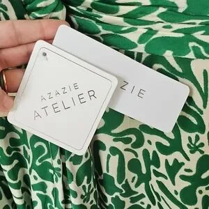 Chic long sleeve dress with a green and white pattern. Features a flattering fit and elegant design.