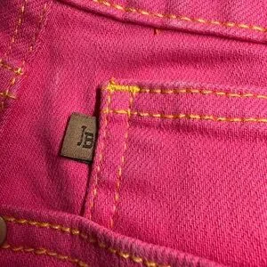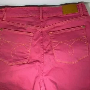 Magenta Pink Garment Dued denim with stylish stitching. Features a leather brand patch.
