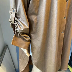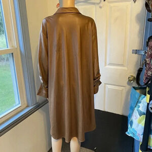 NewLook Womens 3X Midi Shirt Dress Button Up Side Split LookLike Suede Champagne