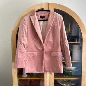 Excellent condition, like new. Velvet pink blazer size 6 from J. Crew. Features notched lapels and front pockets. No flaws, from a clean and smoke free home.