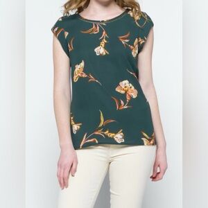 Elevate your wardrobe with this elegant sleeveless top featuring a vibrant floral print. Perfect for any occasion, this green top adds a touch of sophistication to your style.