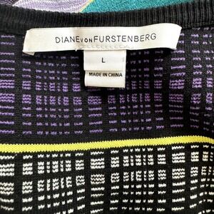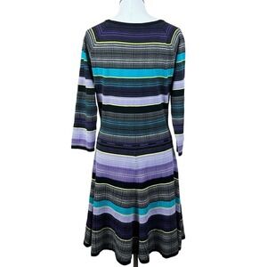 Diane von Furstenberg Women's Carrigan Dress Size Large Purple Teal 3/4 Sleeve Silk Blend Striped Fit & Flare Knit