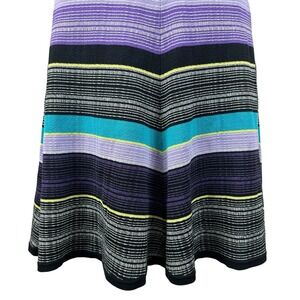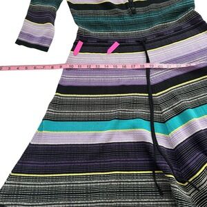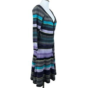 DVF Women's Carrigan Dress Large Purple Teal 3/4 Sleeve Silk Blend Striped Knit